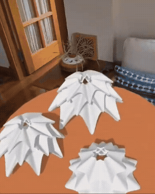 The shade can be positioned in both orientations allowing the user to have the choice in how the form is displayed. The two compositions change how the structure is perceived. The psychology of the classic interpretation of Kiki and Boba. Each name resonates with a either a sharp rigid form or a form with smooth and rounded curvature. This can be displayed with the Lotus shade as one orientation seems to work with gravity, draping organically (Boba) while the other form feels rigid and acts as a supportive structure (Kiki).